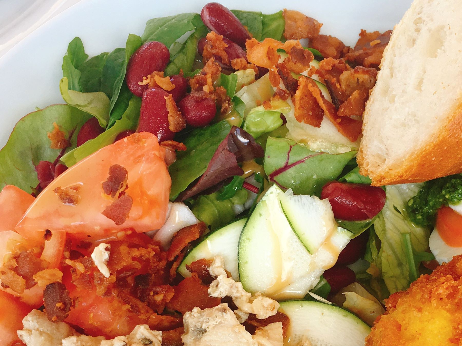 Salad of greens, tomatoes, beans and bacon