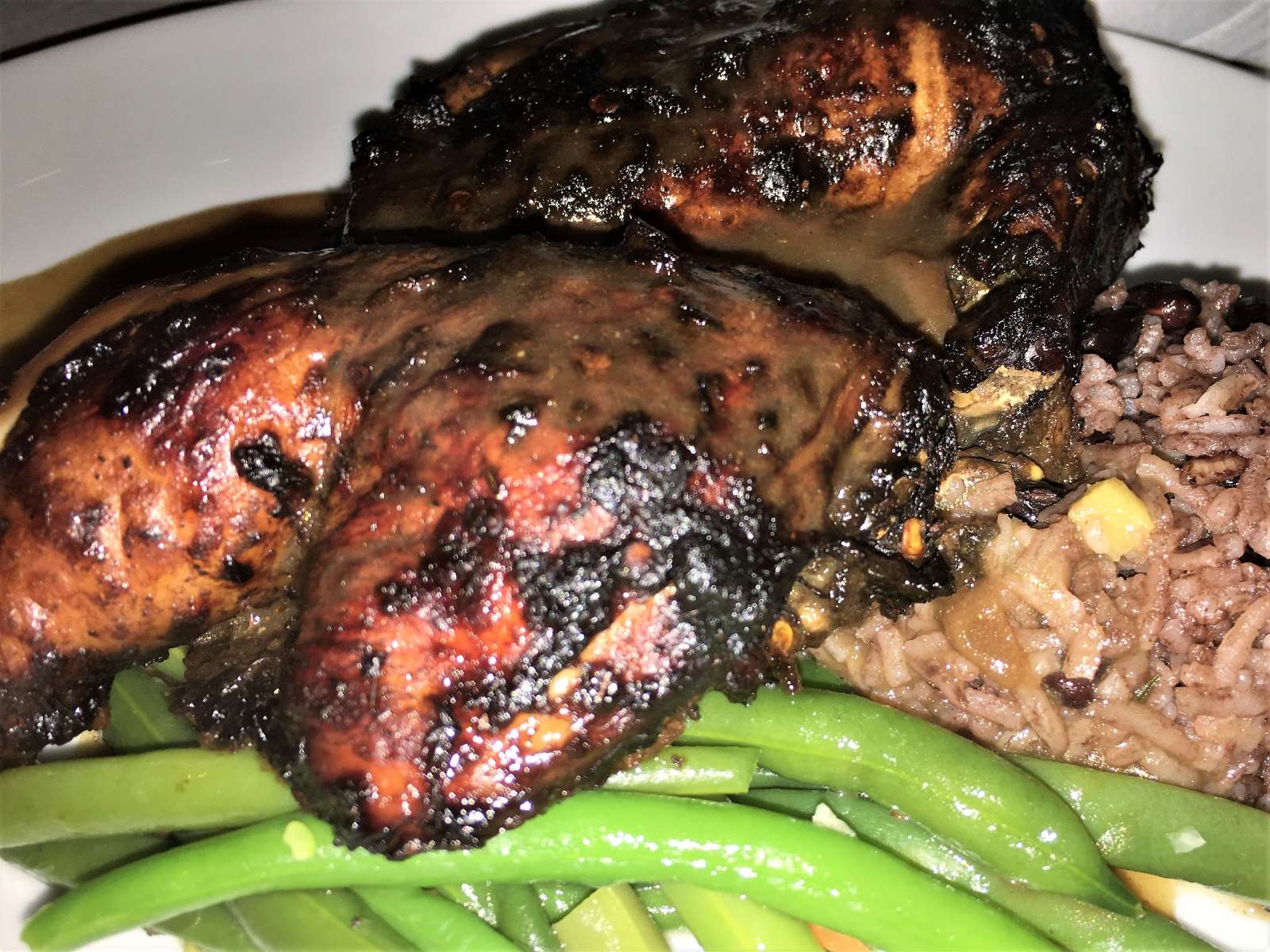 Jamaican Jerk Chicken with dirty rice and green beans in the Silhouette Dining Room
